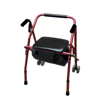 Andador Rollator gris o Bordo plegable y regulable (5 posiciones cada 2,5 cm). Estructura de aluminio anodizado, con ruedas y asiento de descanso. Las fotografías y gráficas son meramente ilustrativas. Los productos podrán sufrir modificaciones en sus accesorios y/o colores sin previo aviso.